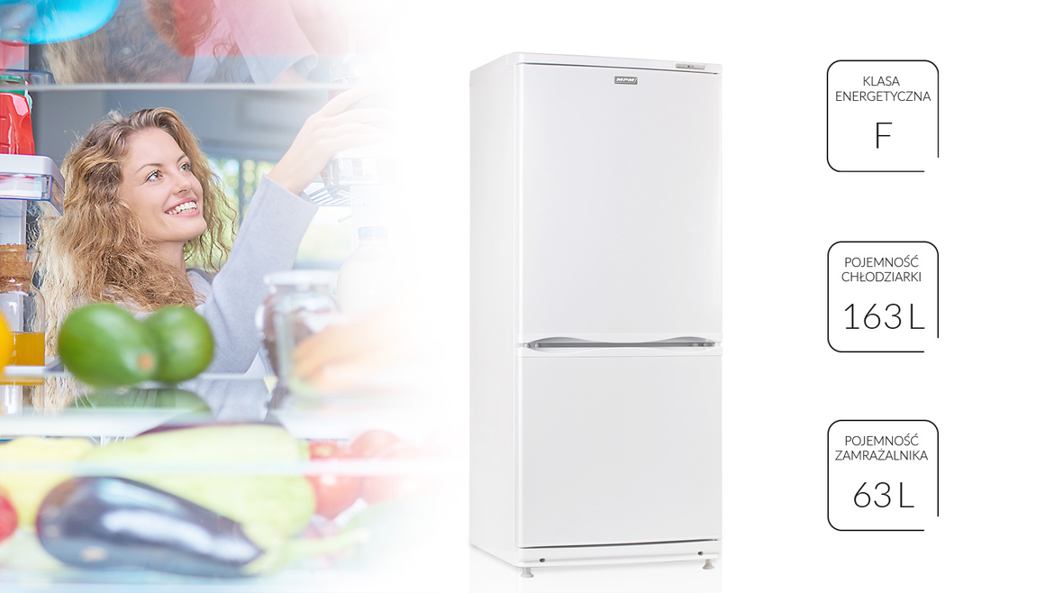 Lodówka MPM-244-KB-08/A to praktyczne, funkcjonalne urządzenie. Pracuje w klasie energetycznej F. Pojemność części chłodzącej to 163 litrów, pojemność umieszczonego w dolnej części zamrażalnika - 63 litry.