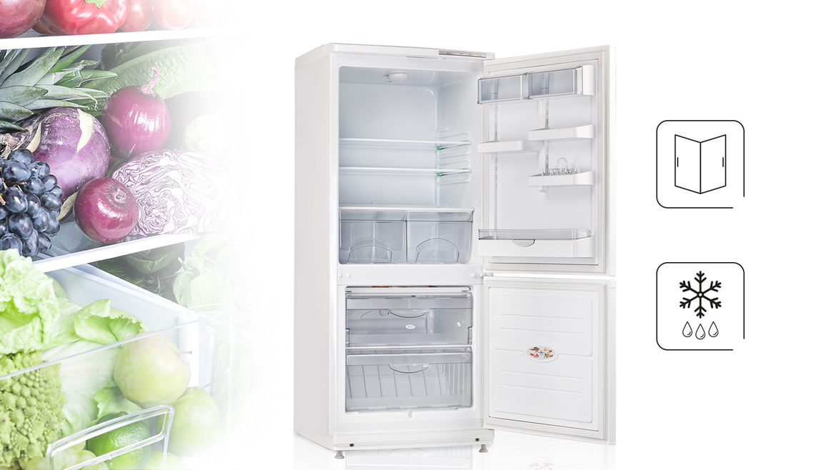 We wnętrzu, w części chłodniczej chłodziarko-zamrażarki MPM-244-KB-08/A znajdziesz trzy półki z możliwością regulacji położenia, funkcjonalne pojemniki do przechowywania warzyw czy owoców, specjalne przedziały na butelki i balkoniki na drzwiach, pojemnik na nabiał oraz na lód.