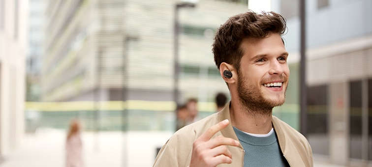 Możliwość prowadzenia rozmów bez użycia rąk zapewnia swobodną komunikację. Słuchawki WF-1000XM3 to wyraźniejszy dźwięk i możliwość nawiązywania połączeń.